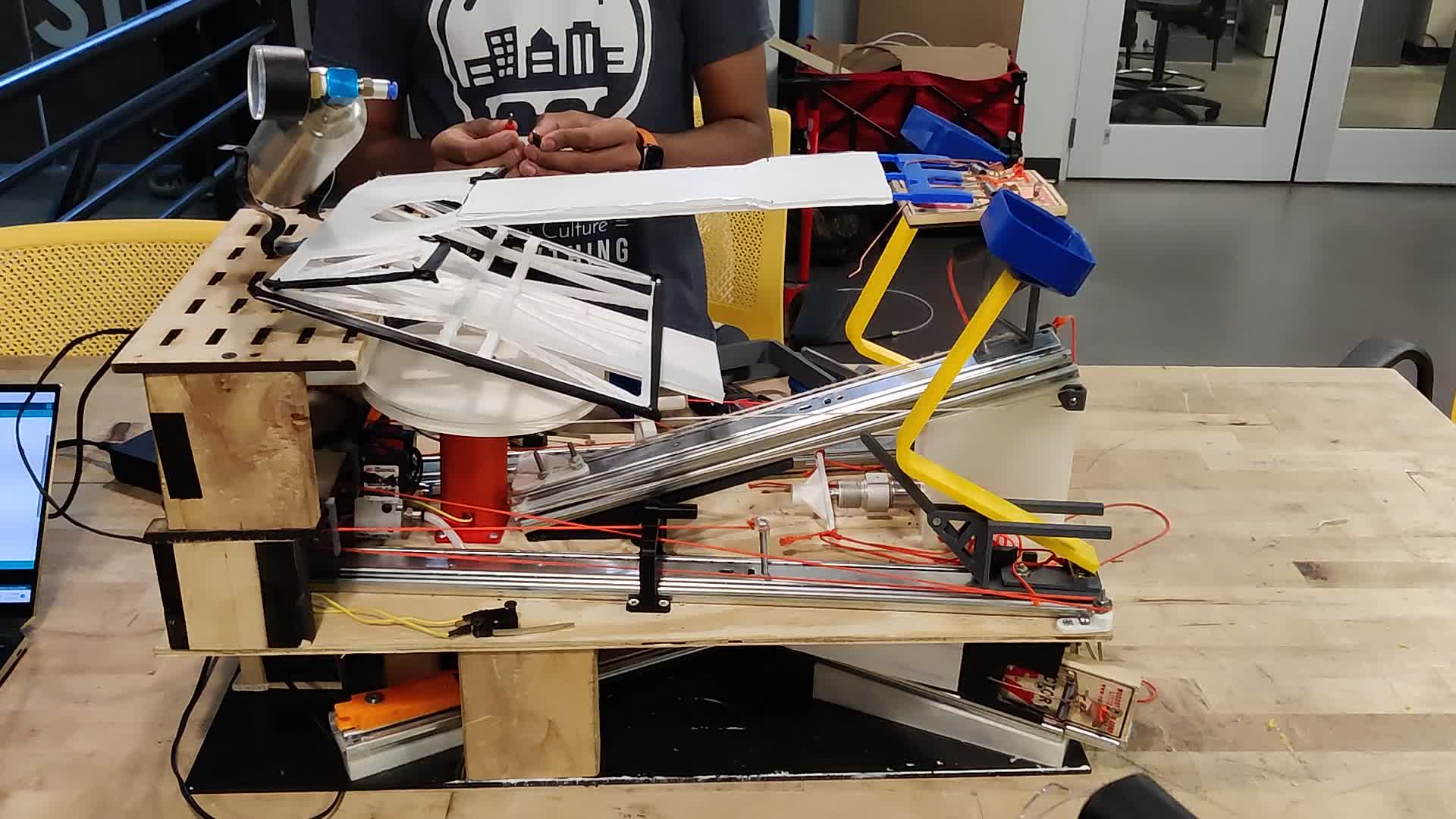 An autonomous robot that gathers, knocks over, and deposits various game elements, designed with a team for the Spring 2022 ME 2110 design competition.