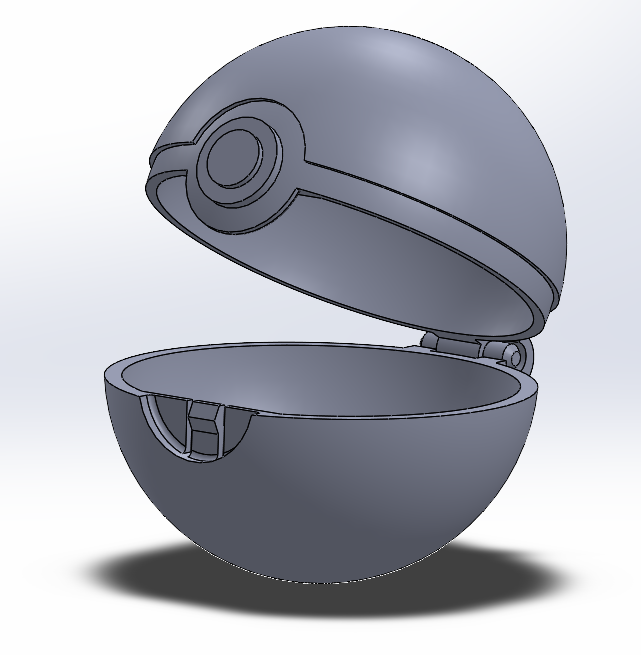 The Poké Ball would also need to snap closed, as otherwise it would be useless as a storage container. I initially wanted to make a mechanism that would open the ball when the center button was pressed, but I couldn't figure out how to design that, so I went with a separable snap fit that connects the 2 halves of the ball together all the center circular section.
