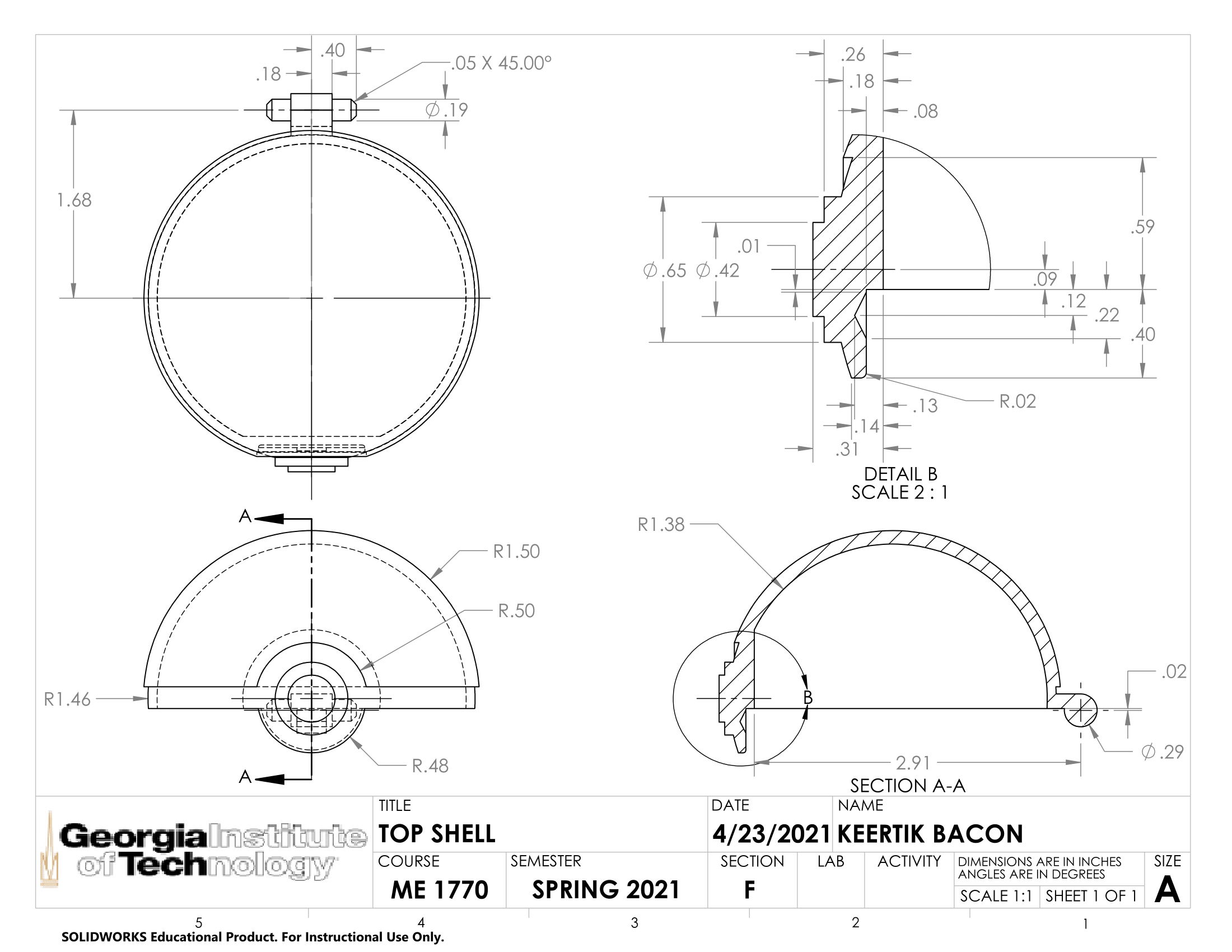 I took the class in Spring 2021, and, being a big Pokémon fan, decided to make a Poké Ball for my individual project. I envisioned it as a nice little box to hold things, and designed it accordingly.