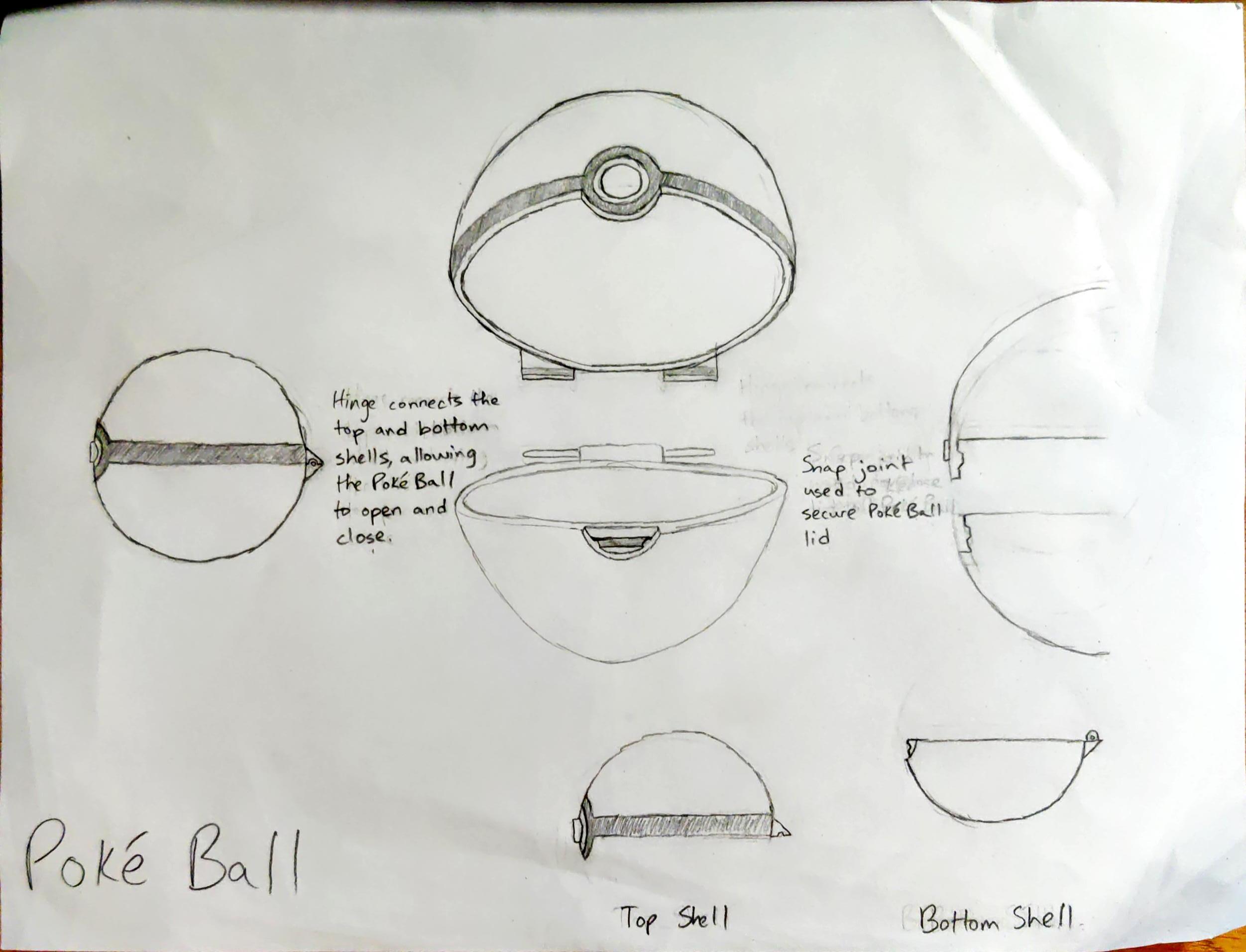 Going into the design process, my biggest concern was regarding the interlocking features. I knew there needed to be a hinge at the back, but it couldn't be too large, as I wanted to make my design faithful to the Poké Balls from the video games and TV series. Those Poké Balls have very hidden hinges, so I had to try and make the hinges on mine more understated.