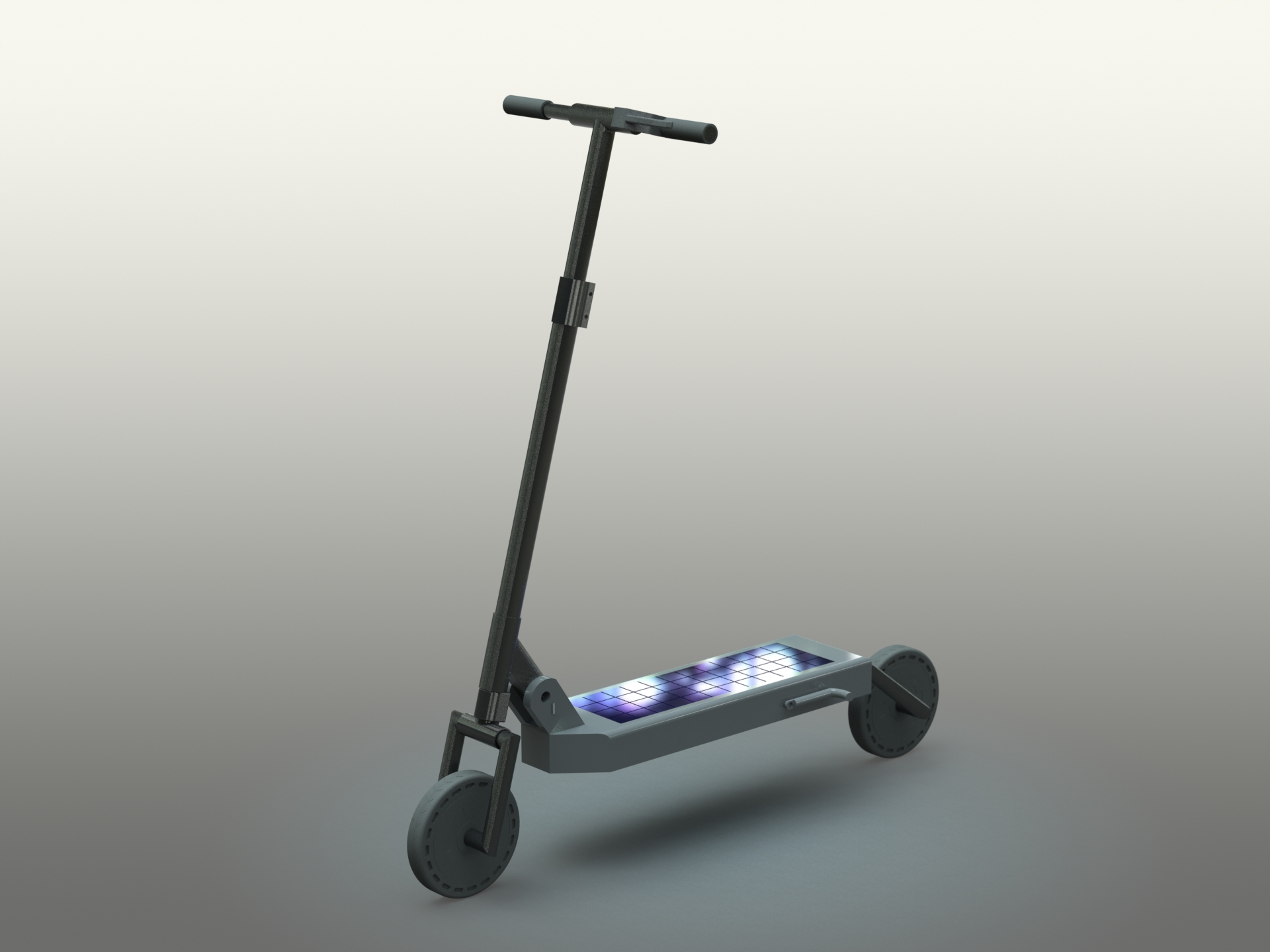 I took the class in Spring 2021, and for our final project, my group decided to address the problem of the lack of options for personal transport over water. While bikes, scooters, and skateboards are popular options on land, there aren't any economical equivalents for traveling over water. And so was born the Solar Surf Scooter, an amphibious electric scooter that, once in contact with water, would transform into a water vehicle, with the tires inflating into flotation devices, and a propeller and rudder extending from the body.